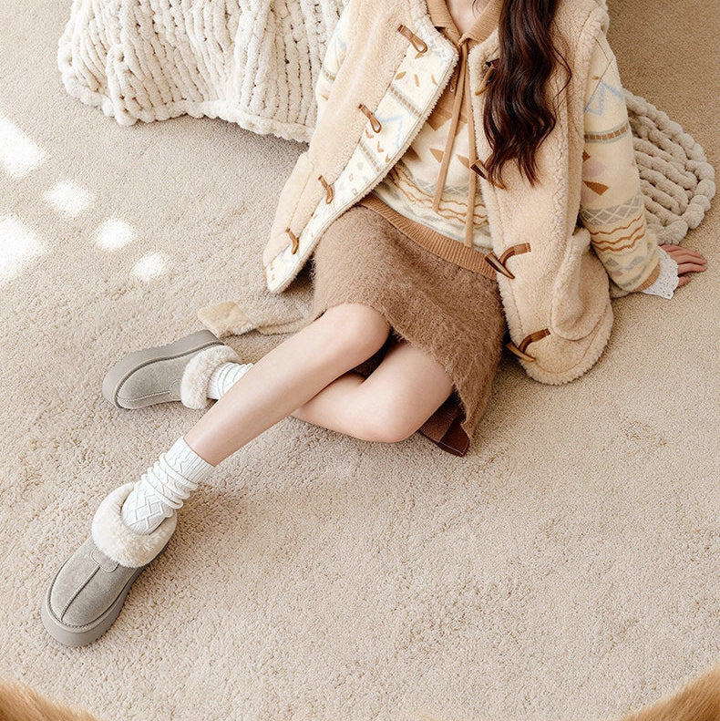 まだ街が目覚めきらない朝にそのまま外へ出たくなる彼女の厚底ファースリッパ _K0266 – coko tokyo