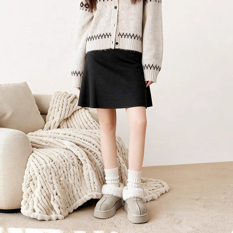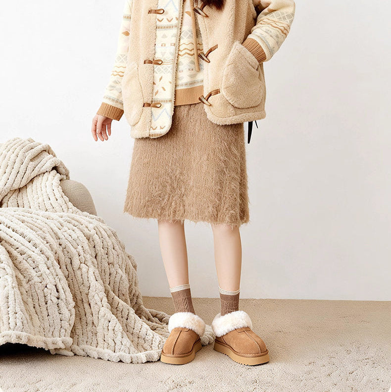 まだ街が目覚めきらない朝にそのまま外へ出たくなる彼女の厚底ファースリッパ _K0266