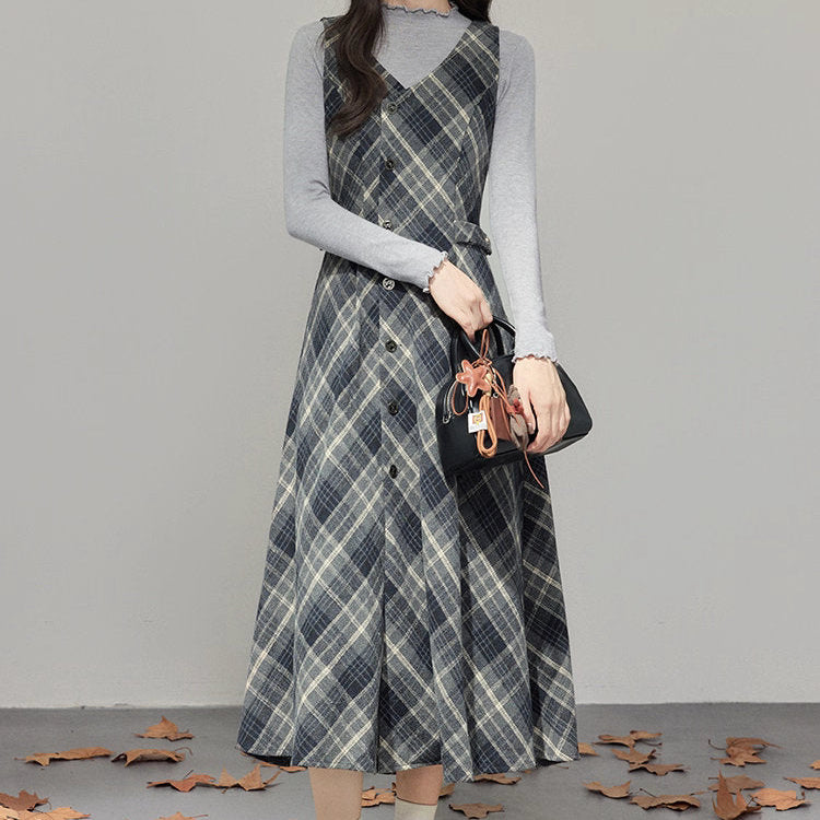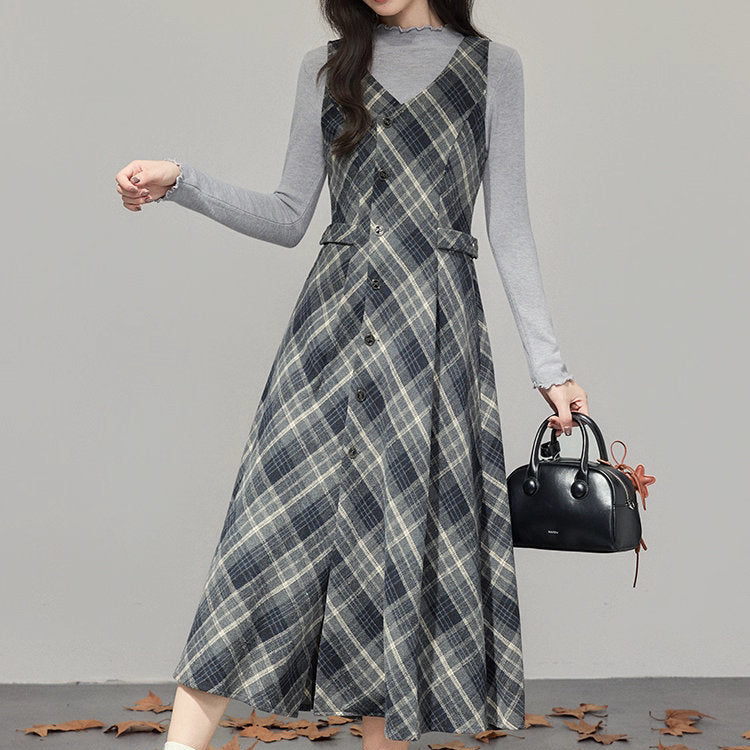 星が見える夜にベレー帽をかぶって恋の続きを想像するロマンティックムードなチェックワンピ_K0231
